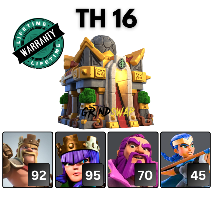 Med Level TH16 Account WIth Good Troops, Heroes And Defenses